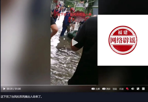 福州倉山區(qū)“因臺風出人命”視頻實為送生病村民就醫(yī)! 2023-07-29 15:12 0 7月29日,一則關于“臺風導致村民死亡”的消息在社交平臺傳播,引發(fā)關注。網(wǎng)傳視頻中有救援人員使用皮劃艇運送人員,定位顯示為福州倉山區(qū)高湖村,視頻配文稱“臺風杜蘇芮搞出人命來了”。 (網(wǎng)傳視頻截圖) 據(jù)福州市相關部門核實,網(wǎng)傳視頻實為救援人員將被困生病村民送醫(yī)救治。請廣大網(wǎng)民停止傳播相關不實信息。 來源: 福建辟謠 責任編輯:臧劍