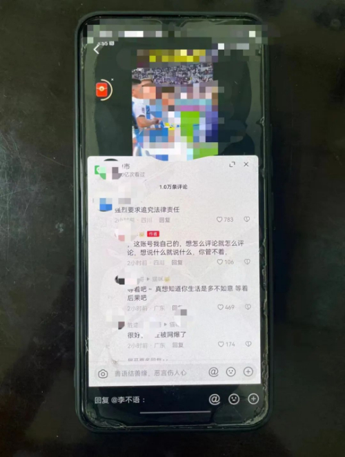 事件發生后,有網民舉報稱:一IP屬地為四川的網民曾多次在死者母親網絡平臺賬號貼文下發布“小孩媽媽哭的傷心都是演戲,一共賠償了260萬足夠他們一家人過上好日子,還想怎樣”、“校方150萬賠償,保險公司80萬,司機主動賠償30萬,一共260萬了,請問一下她家一輩子賺的了這么多錢嗎?”等不當言論。