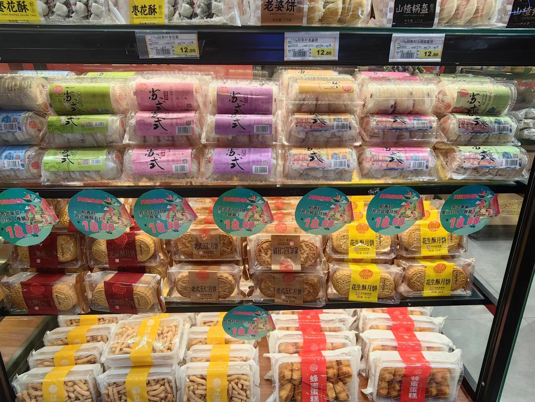 月餅專柜擺放在超市賣場的醒目位置。