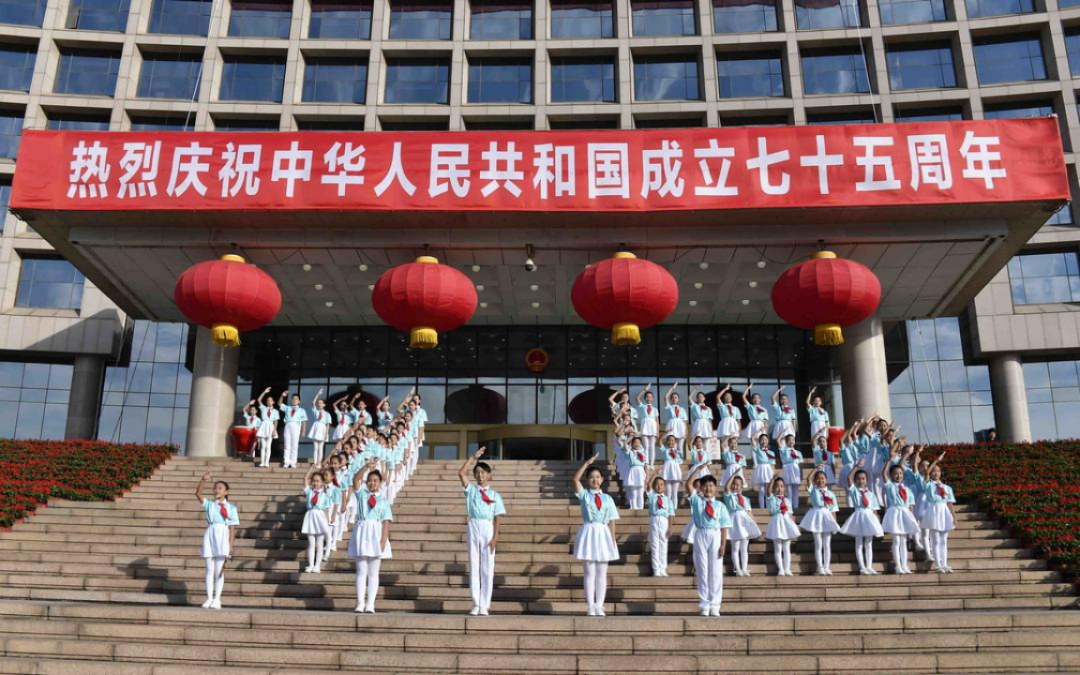 上午8時(shí)整,伴隨著《我和我的祖國(guó)》的悠揚(yáng)旋律,升旗儀式正式開始。溫暖的陽(yáng)光照耀著市級(jí)機(jī)關(guān)辦公樓,75名少年兒童站成“75”字樣的隊(duì)形,展示時(shí)代新人昂揚(yáng)自信的青春力量:“少年智則國(guó)智,少年富則國(guó)富,少年強(qiáng)則國(guó)強(qiáng)。”