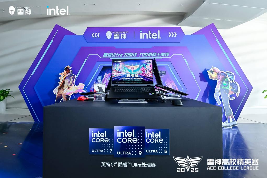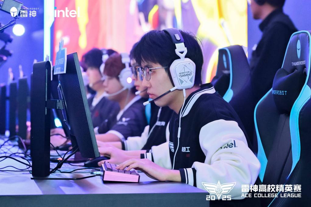 總決賽由雷神科技攜手英特爾聯合承辦,舞臺設在科技感十足的青島虛擬現實創享中心。現場使用了搭載英特爾酷睿i7-14700F處理器的雷神黑武士·Shark水冷電競主機,擁有20核心28線程,最大睿頻5.4GHz,確保每一位選手的極限操作都能得到精準、流暢的呈現。作為雷神的深度合作伙伴,英特爾為雷神的旗艦產品注入高效“芯”動力,全新酷睿Ultra 200HX處理器為雷神高性能筆記本帶來了革命性的高能效,憑借其強大的AI算力與穩定的性能輸出,讓雷神ZERO系列旗艦游戲本成為無短板的“六邊形戰士”。可以為《無畏契約》這類強度競技項目提供極低延遲、超高幀率與疾速響應的硬核保障,將高校電競賽事的硬件體驗提升至職業級水準。
