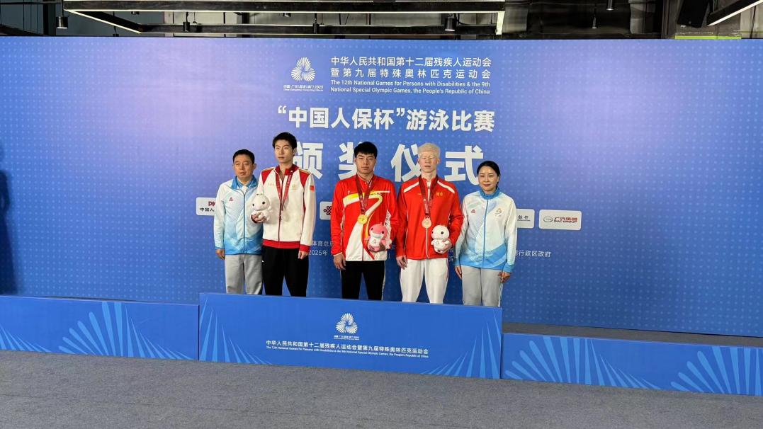 徐興尚(左三)獲S12級男子100米蝶泳金牌