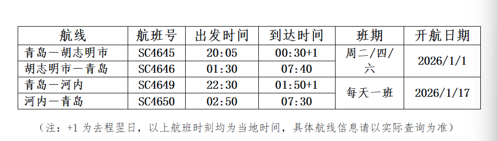2026年1月起,青島機場聯合山東航空將陸續開通青島直飛越南河內、胡志明市兩條航線,為廣大旅客探索東南亞的文化魅力與熱帶風情,提供便捷直達選擇。