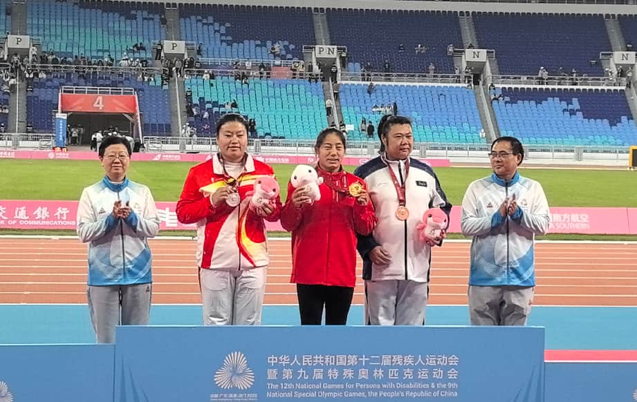 王吉麗(左二)獲得女子鉛球T12級銀牌。