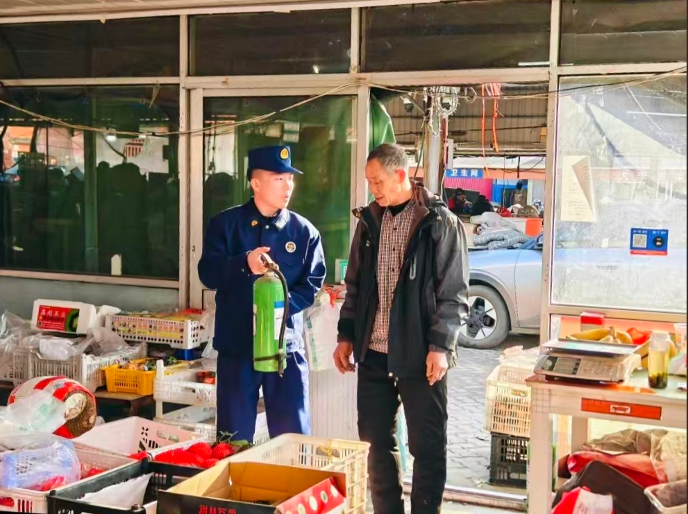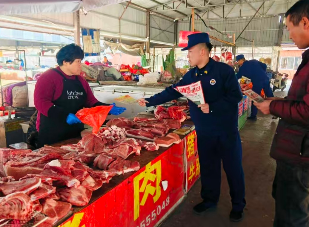 活動現場,消防宣傳員結合農貿市場貨物密集、用電頻繁、人員流動大等特點,用通俗易懂的語言向商戶、居民講解電氣火災預防、初期火災撲救、火場逃生自救等核心知識,通過發放消防安全宣傳單、在醒目位置張貼海報,將“三清三關”、消防通道暢通等關鍵要求精準傳遞給廣大商戶、居民。
