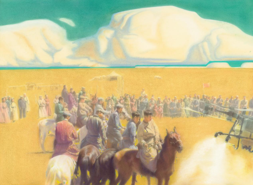 王建峰《金原牧鷹》120cm×110cm 紙本水彩粉畫