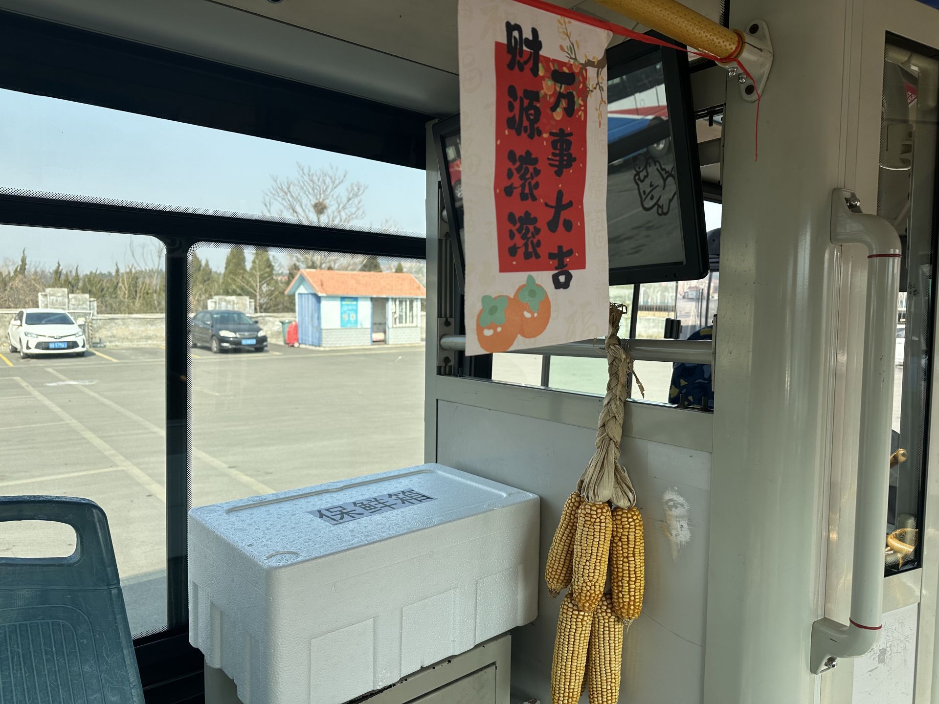 最引人注目的莫過于車廂前部放置的潔凈的保溫保鮮箱。“考慮到很多乘客會購買海鮮、鮮肉、豆腐等不易保存的年貨,我們特意配備了保鮮箱,方便大家暫時存放,解放雙手安心乘車。”383路線駕駛員高維憲介紹道。這一暖心細節,讓這趟往返于城市與集市之間的公交車,化身成為了一個流動的“年貨驛站”,承載著滿滿的生活氣息與人間煙火。
