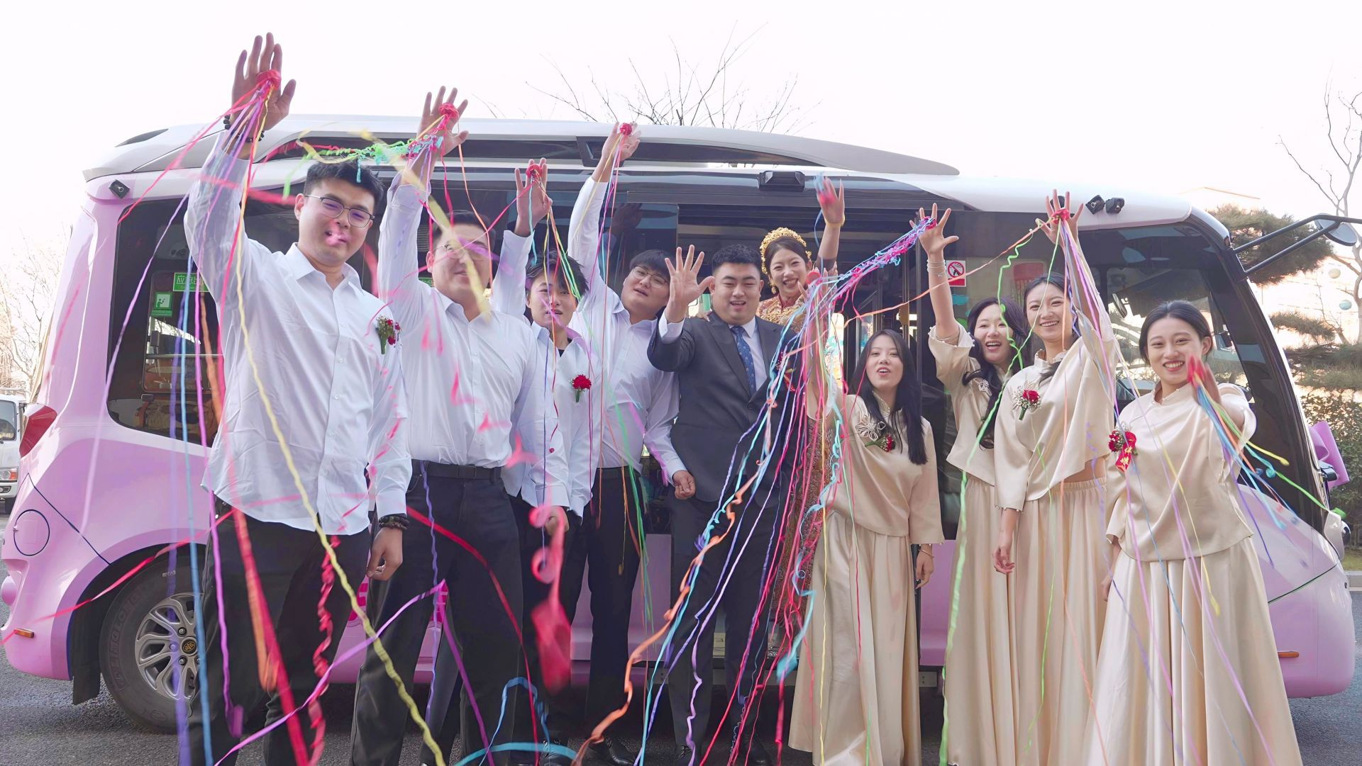 在眾多創(chuàng)新服務(wù)中,“公交婚車”成為引領(lǐng)低碳新風(fēng)尚的亮點(diǎn)。去年12月,備受市民喜愛的“我愛青島”主題巴士——“小粉”,身披彩帶與鮮花,第三次化身為甜蜜“婚車”,載著新郎牛先生與新娘祝女士,駛向他們?nèi)松男码A段。“用公交車當(dāng)婚車,既浪漫又環(huán)保,還能容納親朋好友一起分享喜悅,太有紀(jì)念意義了!”新郎牛先生說道。