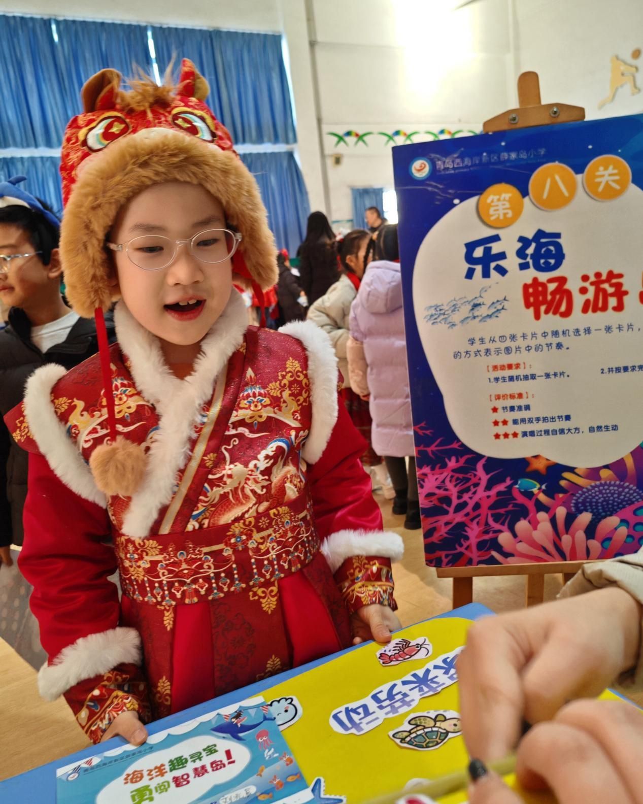 近日,青島市西海岸新區薛家島小學為一二年級600余名學生舉辦了一場別開生面的學業評價活動——“海馬小騎士闖蔚藍·馬年奔騰篇”。活動以海洋探險為主題,將傳統考場轉化為九大趣味關卡,通過游戲化、情境化的方式,全面評估學生的學科素養與綜合能力。