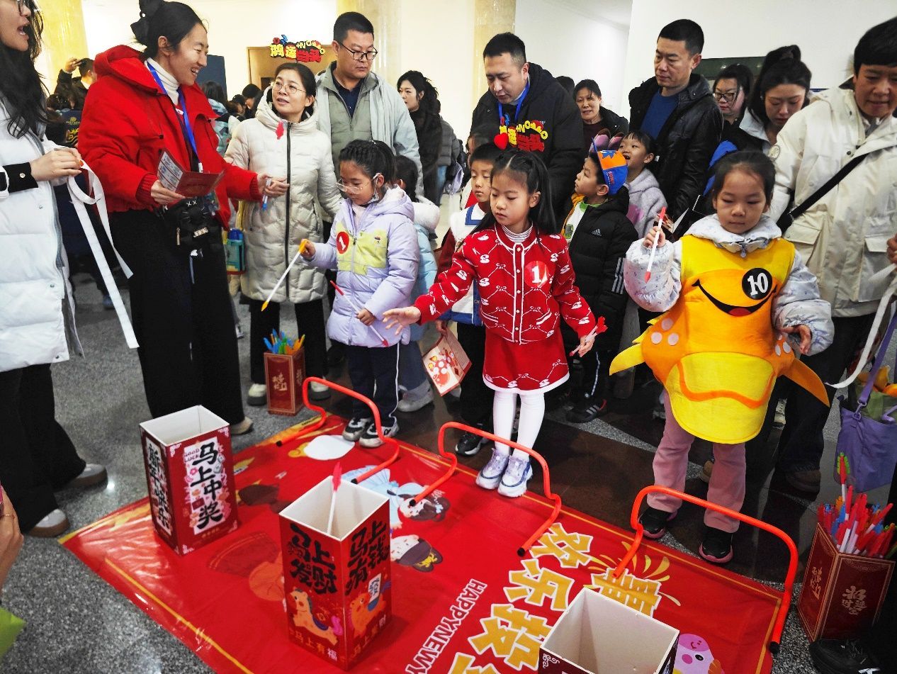 “向未來”環節兼顧體能鍛煉與學段銜接,為孩子的成長搭建橋梁。體能挑戰中,孩子們參與“躍啟未來”活動,跳躍碰響祝福鈴,激活身體能量;體驗“投壺納吉”傳統游戲,在一投一擲間鍛煉手眼協調能力,感受傳統禮趣。活動特別設置幼小銜接環節,幼兒園萌娃組團前來“探班”,沉浸式打卡哥哥姐姐的樂考場景。這場活動搭建起幼小銜接的彩虹橋,讓兩個學段的過渡更加自然順暢。