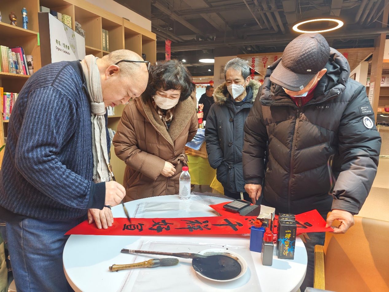 另一邊的寫福送福區則排起了長隊,書法家站在案前,紅紙鋪展、筆墨研勻、凝神揮毫,一個個筆法遒勁、寓意吉祥的“福”字躍然紙上。居民們有序排隊,等待領取這一份手寫的新春祝福,期許新的一年“馬上有福”,把滿滿的福氣帶回家。