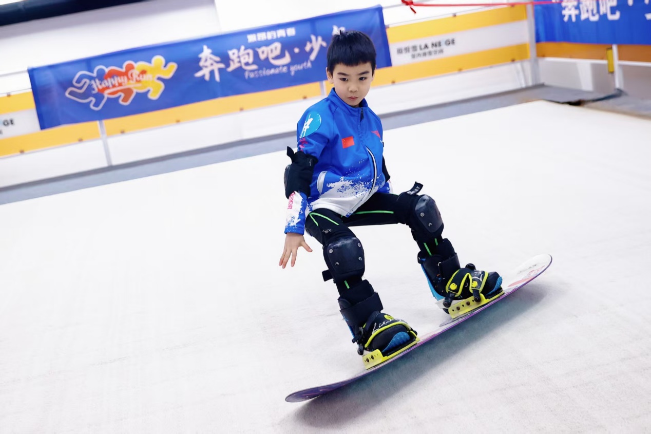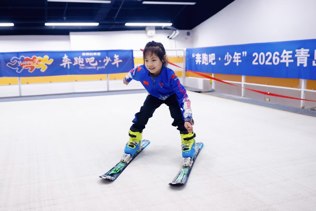 2月1日,青島海信廣場極悅雪滑雪空間內熱鬧非凡,“奔跑吧?少年”2026年青島市青少年冰雪季——室內模擬滑雪體驗賽在此舉辦。