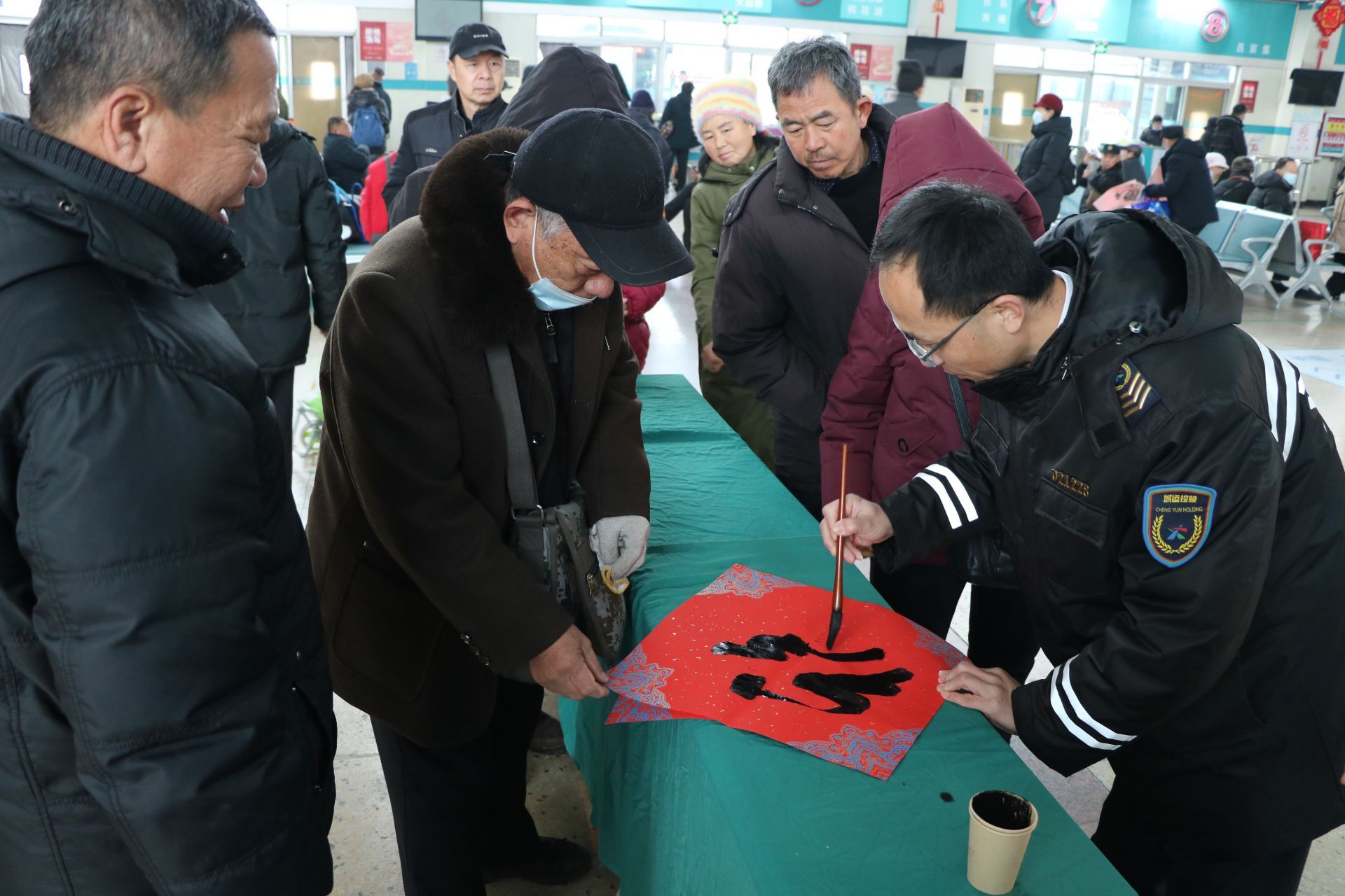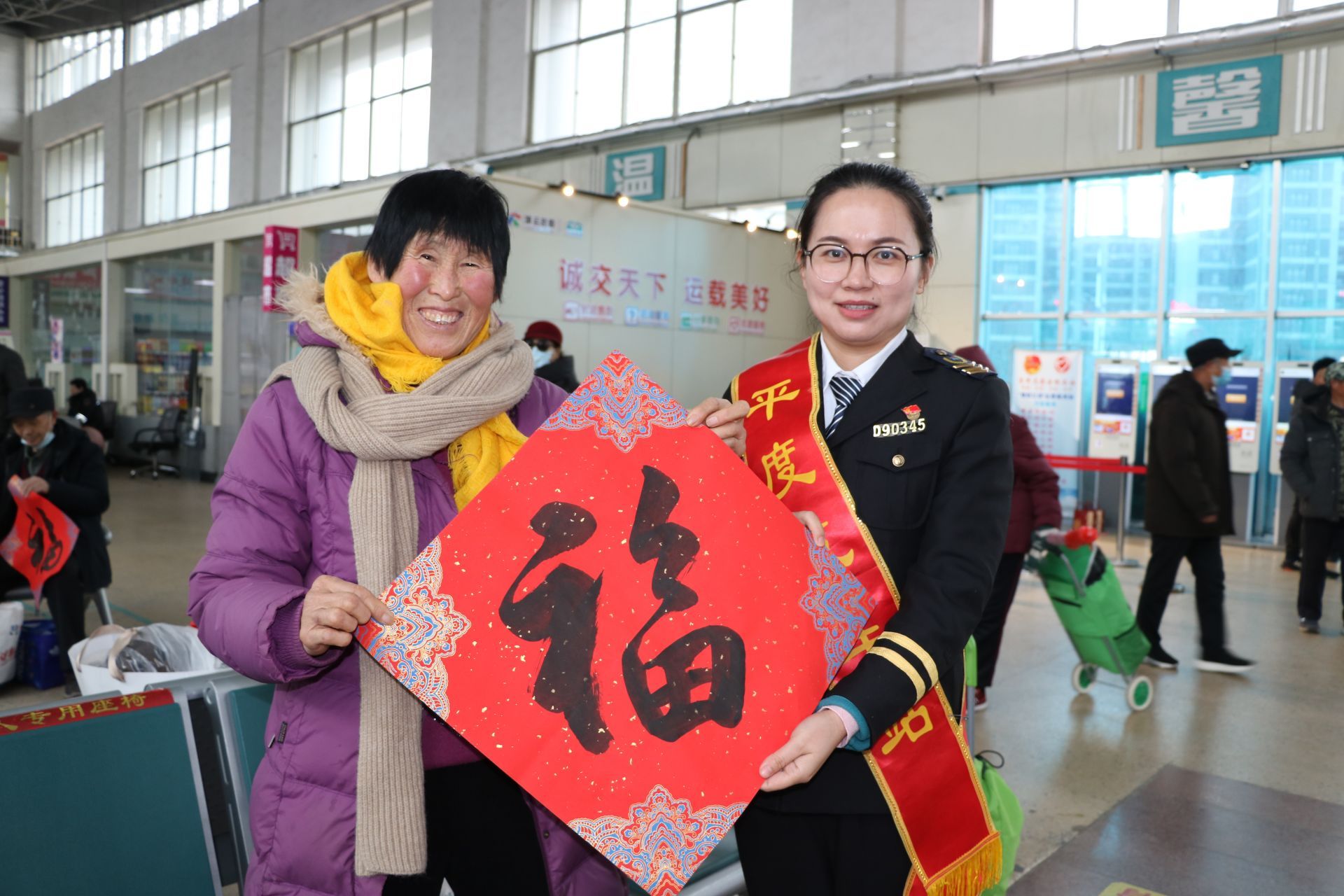 春運首日,溫馨巴士公司、青島汽車北站、平度汽車站等還開展了為乘客送“福”活動。職工們把自己書寫的福字、燈籠遞到等候乘車的乘客手里,乘客的笑容在“福”字映襯下格外溫暖。在城市公交和鄉鎮公交上,職工和乘客一起舉著福字合影,車廂里瞬間充滿了濃濃的年味兒,讓回家的旅途多了一份溫馨與喜悅,讓春運路上的乘客提前感受到了家的溫暖。