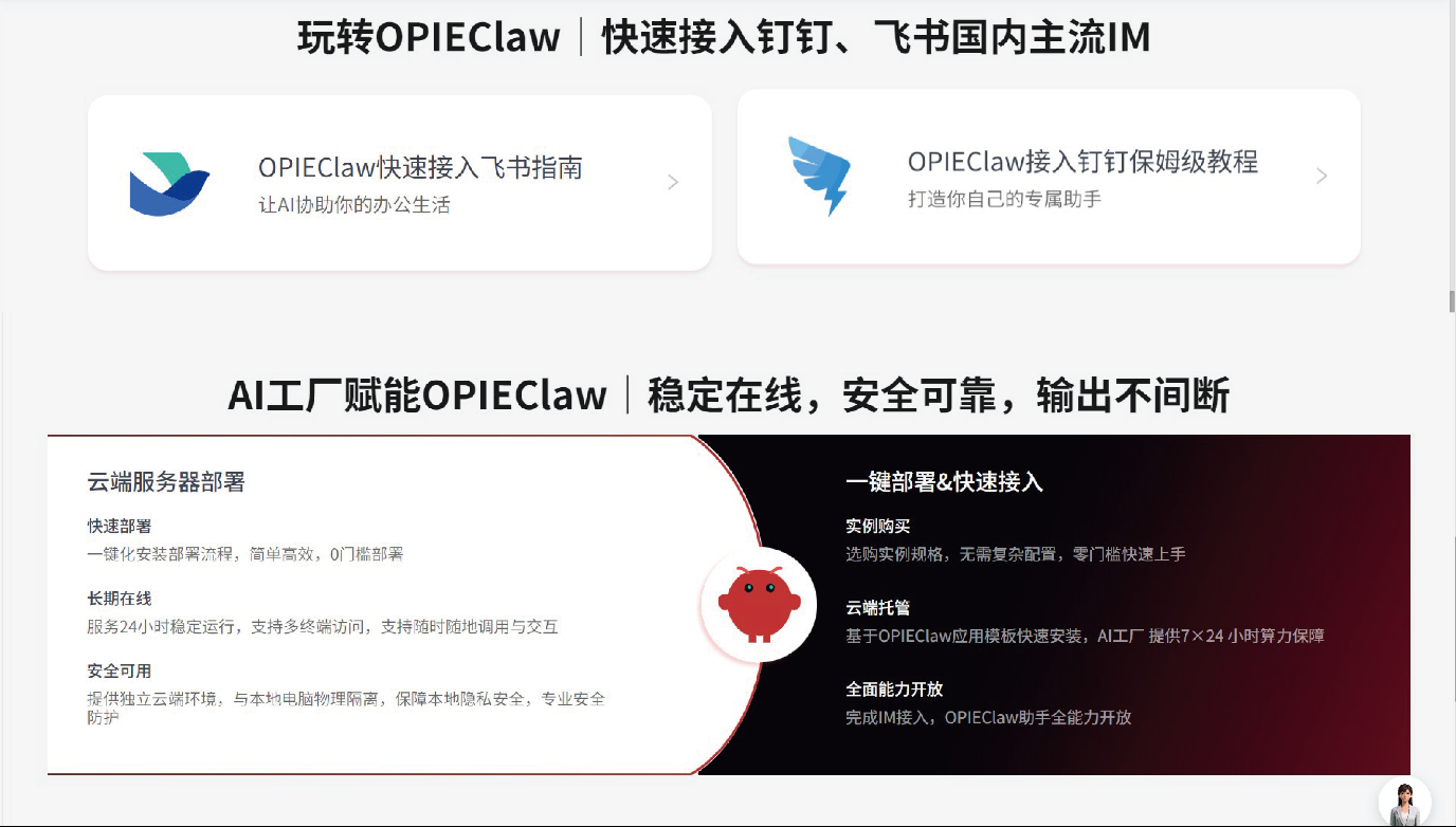 針對普通用戶、初創團隊等非專業人群,OPIE Claw全面摒棄本地配置、環境搭建與代碼操作,采用云端一鍵部署模式。用戶無需高配置硬件、無需專業運維知識,完成簡單注冊即可分鐘級啟用,快速上手任務執行、數據處理、自動化辦公等核心功能,真正實現“小白友好、即開即用”,大幅降低龍蝦的使用與普及門檻。